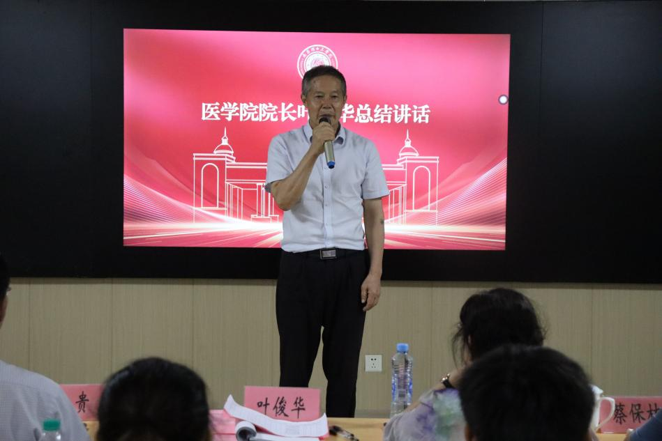 院长叶俊华在总结讲话中,首先向所有展示成长足迹的同学表示祝贺,并向辛勤培育学生的老师们致以敬意。他指出,国家奖学金不仅是一份沉甸甸的荣誉,更是一面映照过去的镜子、一把衡量未来的标尺。他希望同学们以此为新起点,将“小我”融入“大我”,在未来道路上,始终做到仰望星空与脚踏实地并重,不断涵养人文情怀,锤炼专业本领,勇挑时代重任,最终成长为堪当民族复兴大任的高水平医学人才,为健康中国建设贡献青春的智慧与力量。
