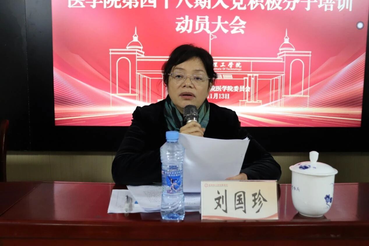 会上,医学院党委书记刘国珍作动员讲话。她指出,入党积极分子培训是党员发展关键环节,是端正入党初心、锤炼政治品格的重要课堂。刘国珍书记向全体学员提出了四点要求:一是要深刻认识培训意义,这是坚定理想信念、提高政治素养、增强党性修养的需要;二是要明确目标,掌握党的理论知识、树立正确入党动机、发挥模范带头作用;三是要端正态度,严格遵守纪律、积极参与学习、坚持理论联系实际;四是要以培训为契机,持续加强学习、自觉接受考验、争取早日入党。刘国珍书记的讲话为学员们注入了强大的精神动力,激励大家以饱满热情投入本次培训和今后的学习生活中去,勇担时代使命。