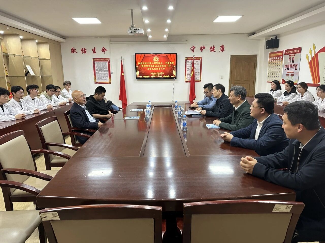 4月17日下午,中国工程院院士、中国军事医学研究院夏咸柱研究员莅临我院指导工作。医学院院长叶俊华、常务副院长涂映、副院长翟元兴等相关部门负责人陪同。
