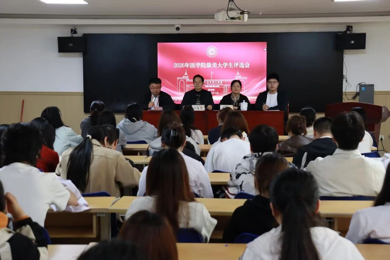4月16日下午,医学院在四楼会议室召开2026年“最美大学生”评选会。医学院院长叶俊华、党委书记刘国珍出席会议,全体辅导员及各班级学生代表参会。